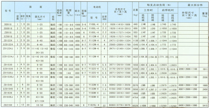 DD、ZD型礦用單軸振動篩運動軌跡為圓,也可稱為圓振動篩,型號分為YA、YK系列,全系列共有十七種規(guī)格,可供礦山、煤炭、冶金、電力、建材、化工等部門對中等粒度物料進行干式分級,對于選用橡膠篩板的篩分機對焦碳物料進行分級效果尤佳。該機型結(jié)構(gòu)簡單,維修方便,作業(yè)可靠,篩分效率高,透篩性能好。