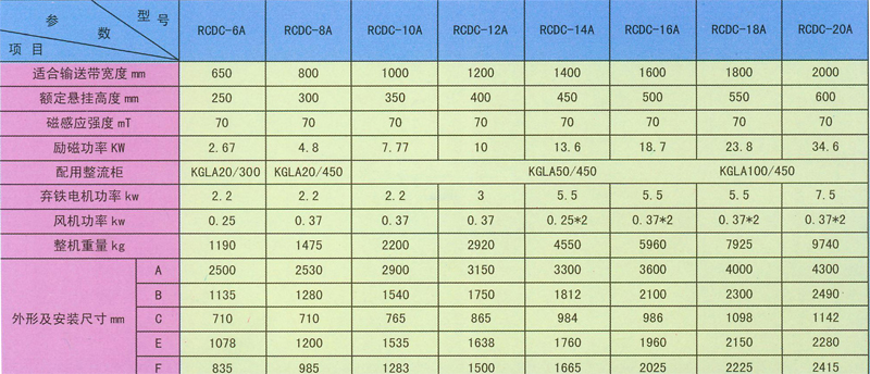 該除鐵器采用控制溫升的專有技術(shù),即在線圈總砸數(shù)N(反應(yīng)磁場(chǎng)強(qiáng)度的主要參數(shù))不變的情況下,采用薄餅線圈數(shù)量的方法以增加風(fēng)道數(shù)量,增大線圈與空氣的接觸面積,因而溫升低,熱態(tài)性能高,本除鐵器連續(xù)工作制100%。