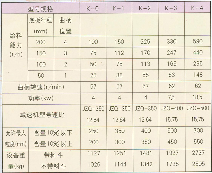 K型往復(fù)式給煤機用于煤或其他磨琢性小、粘性小的松散粒狀物料的給料,將儲倉或料坑里的物料連續(xù)均勻地卸落到運輸設(shè)備或其他篩選設(shè)備中。